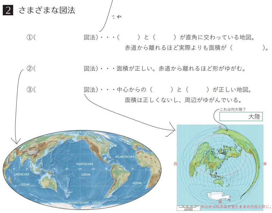 世界の海と陸、さまざまな地図、緯度と経度、赤道、地球の動き